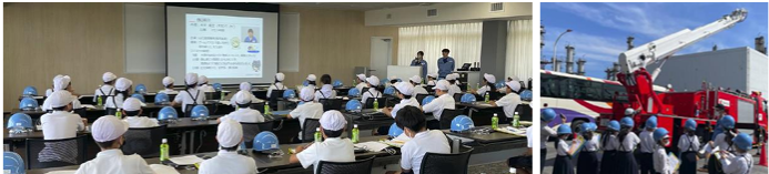 2024 年6月7日、地元秋月小5年生の校外授業を受け入れました。 出光のSDGsに向けた取り組みをご紹介。 自衛消防隊では消防車に直に触れて、アームを動かしてみるなど小学生に楽しんでいただける 企画としました。