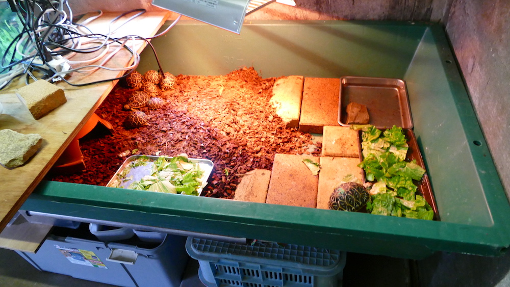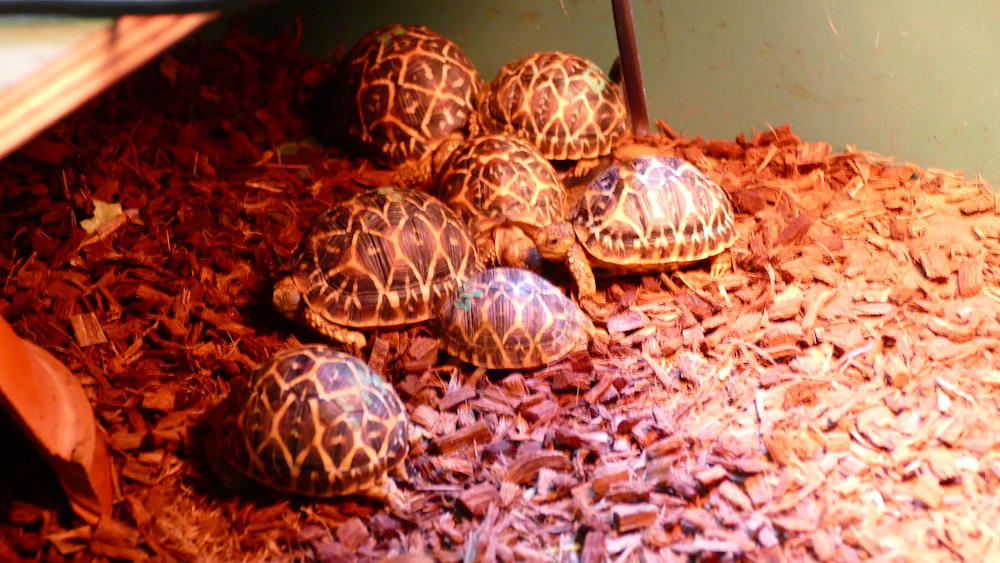 バックヤードにいる小さいインドホシガメたち