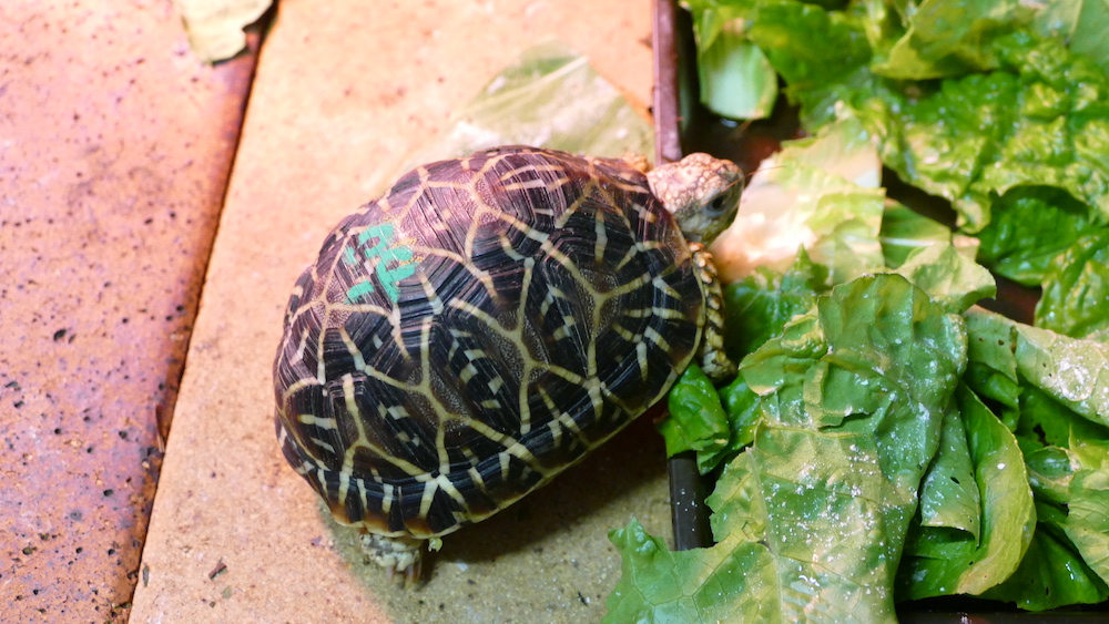 インドホシガメは、インドに生息する草食性のリクガメで、名前の通り、甲羅の星状の模様が美しいカメ。