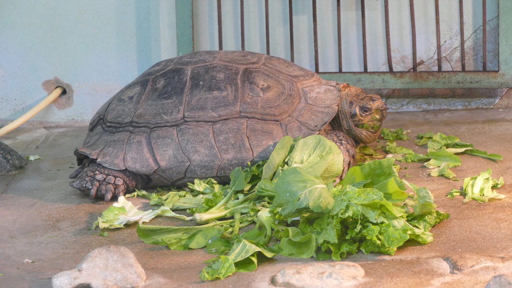 現在ここにはインドホシガメ・ムツアシガメ・ニシアフリカコガタワニ・ビントロングが展示されています。
