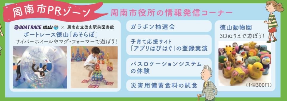 ボートレース徳山でおなじみの「あそらぼ」や、徳山動物園などのコーナーもあります。