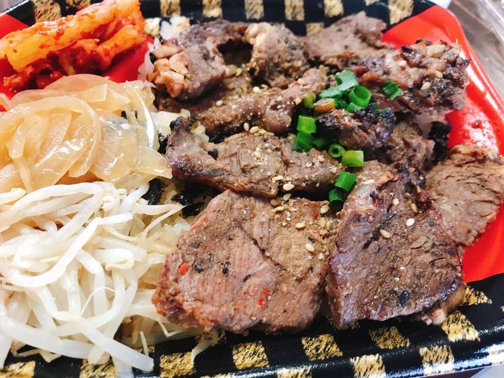 お昼ご飯は、ホルモン横丁さんの「焼肉弁当」