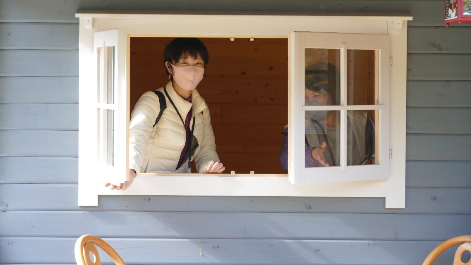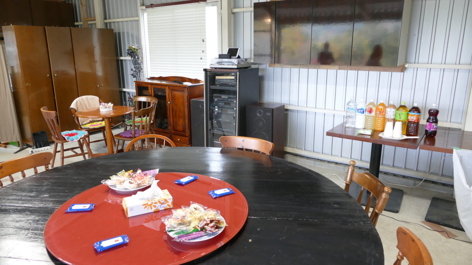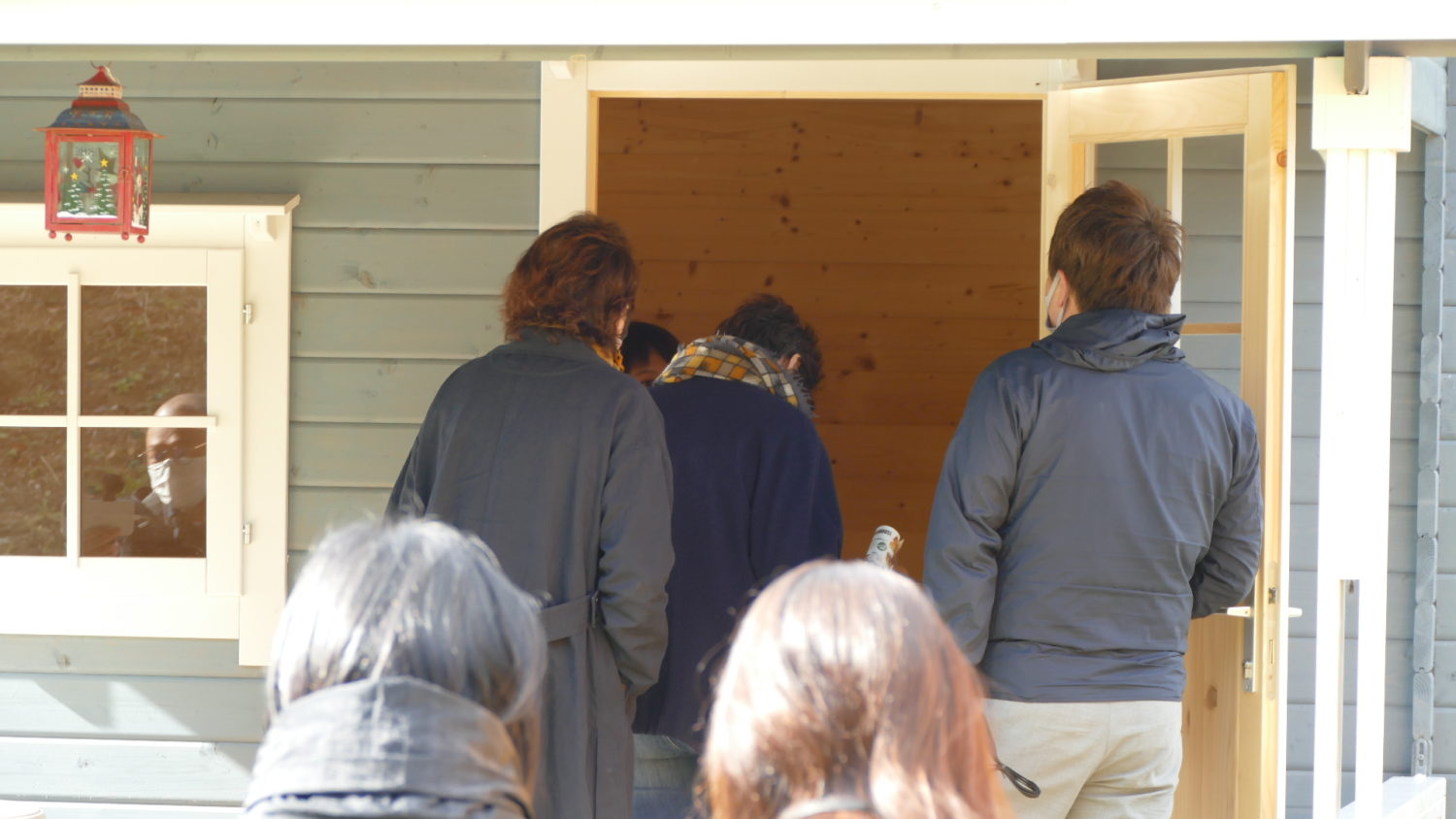 もちろんイベント会場は、ログハウスの中・・・としたいところでしたが、肌寒くなってきた11月後半だったので、ログハウスが見える丘の上に位置する建物をパーティー仕様に。