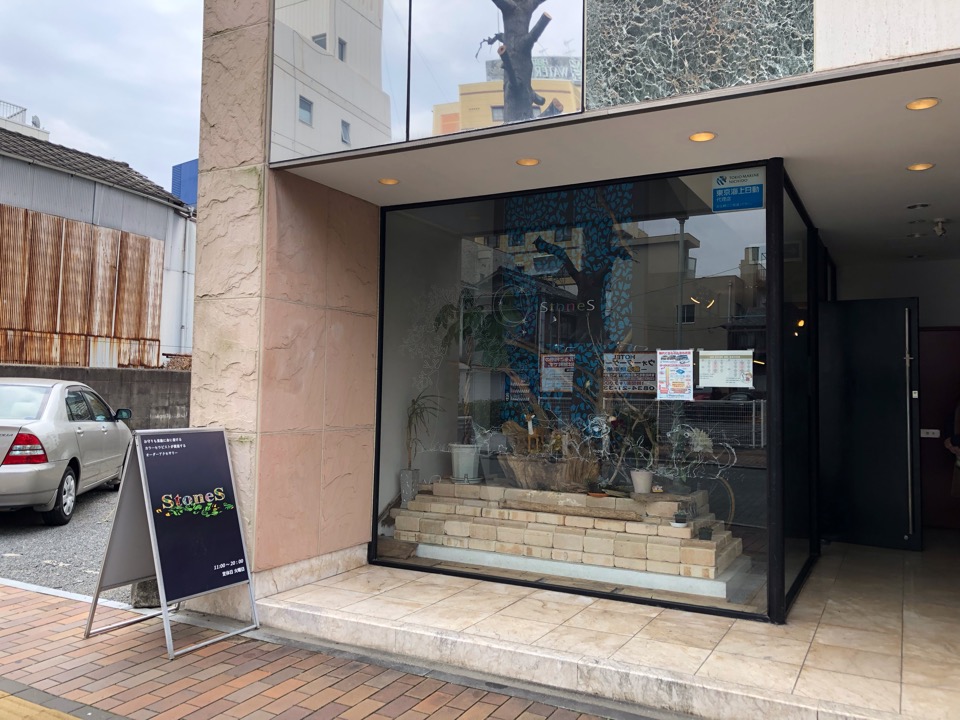 そこを歩くと【StoneS(ストーンズ)】と書かれた看板があり、石畳の通りに馴染んだおしゃれな雰囲気のお店があります。