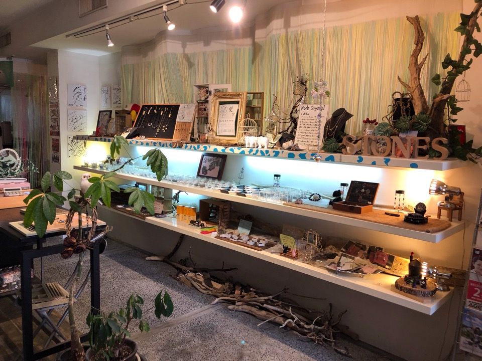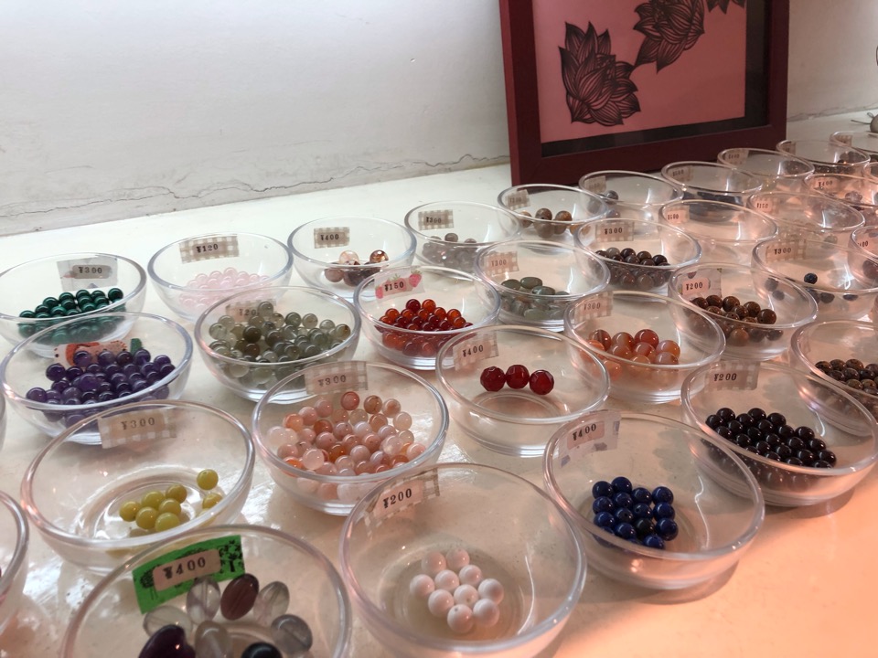 店内はたくさんのアクセサリーや、材料となる天然石がズラリと並んでいます。
