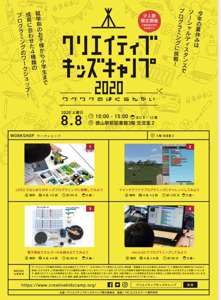 [voice icon=”https://www.tokuyamap.com/wp-content/uploads/2020/07/3dee80657bbd244c56836de67f7c3117-e1596082699585.jpg” name=”斎藤さん” type=”l”]クリエイティブキッズキャンプは2018年から開催していて、例年たくさんのお子さんが参加してくれます。