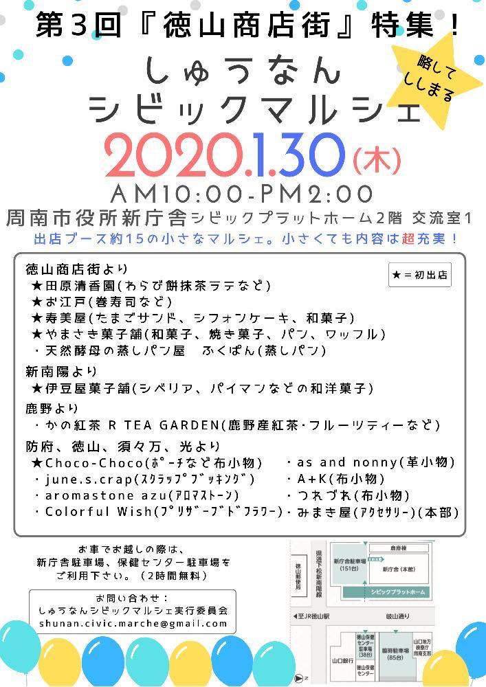 [aside type=”warning”]第3回しゅうなんシビックマルシェの出店募集は締め切っています。[/aside]