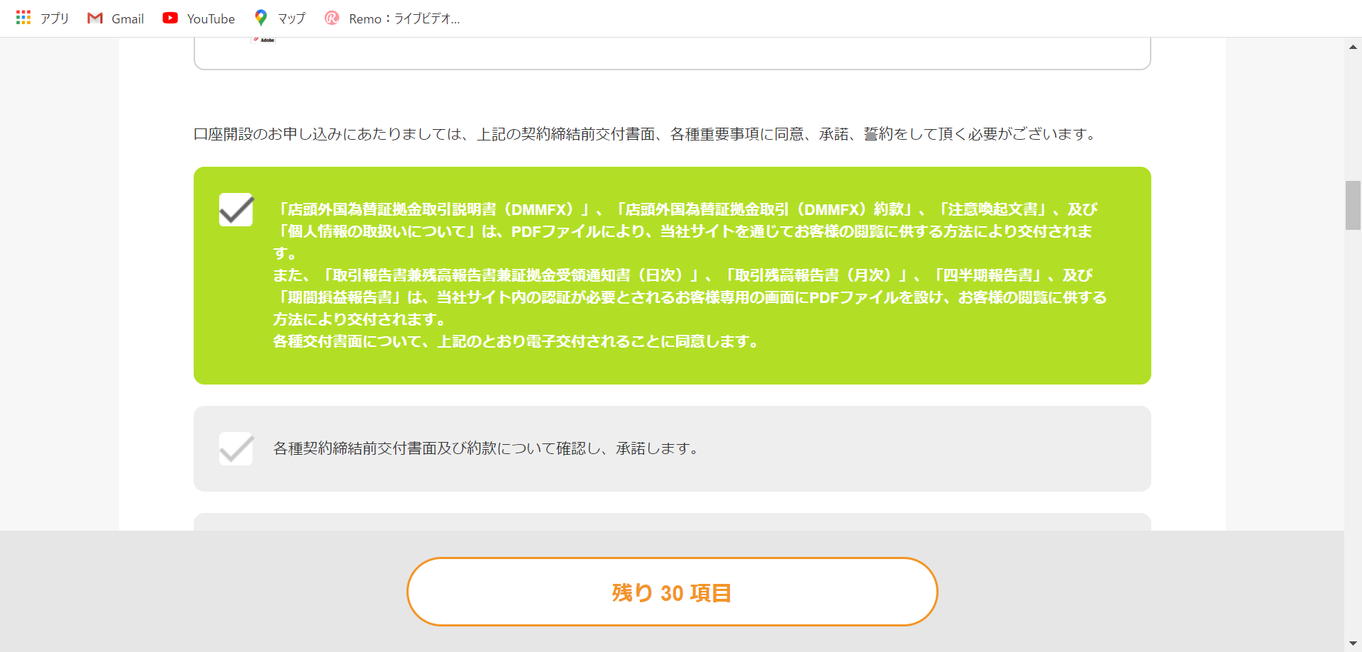 このようになかなかの情報量ですがしっかりと目を通しておきましょう。確認ができたら各種重要事項に同意、承諾、誓約をするようにしてチェックを入れます。