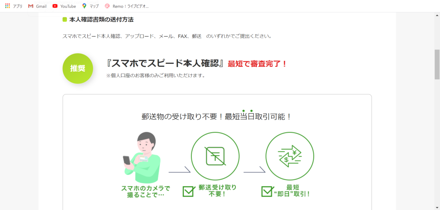 この①~④いずれかの組み合わせで書類を送付すれば本人確認は完了です。このようにマイナンバーカードがなくとも本人確認は行えますが、マイナンバーで登録をすれば最短で取引可能になります。