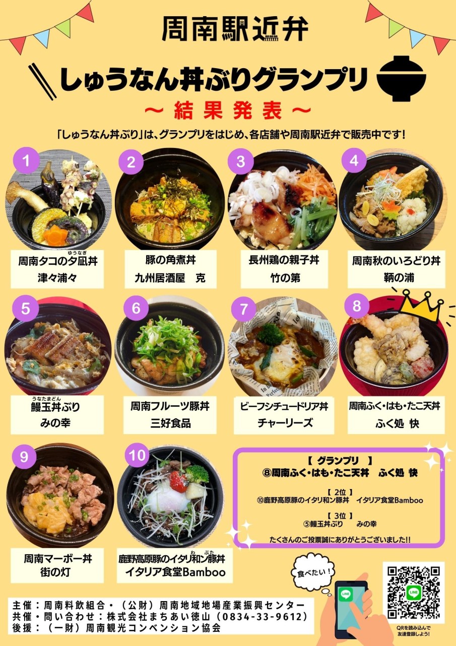 エントリーした10店舗の丼ぶりは、『周南駅近弁』や『各店舗』にてお買い求めいただけます。