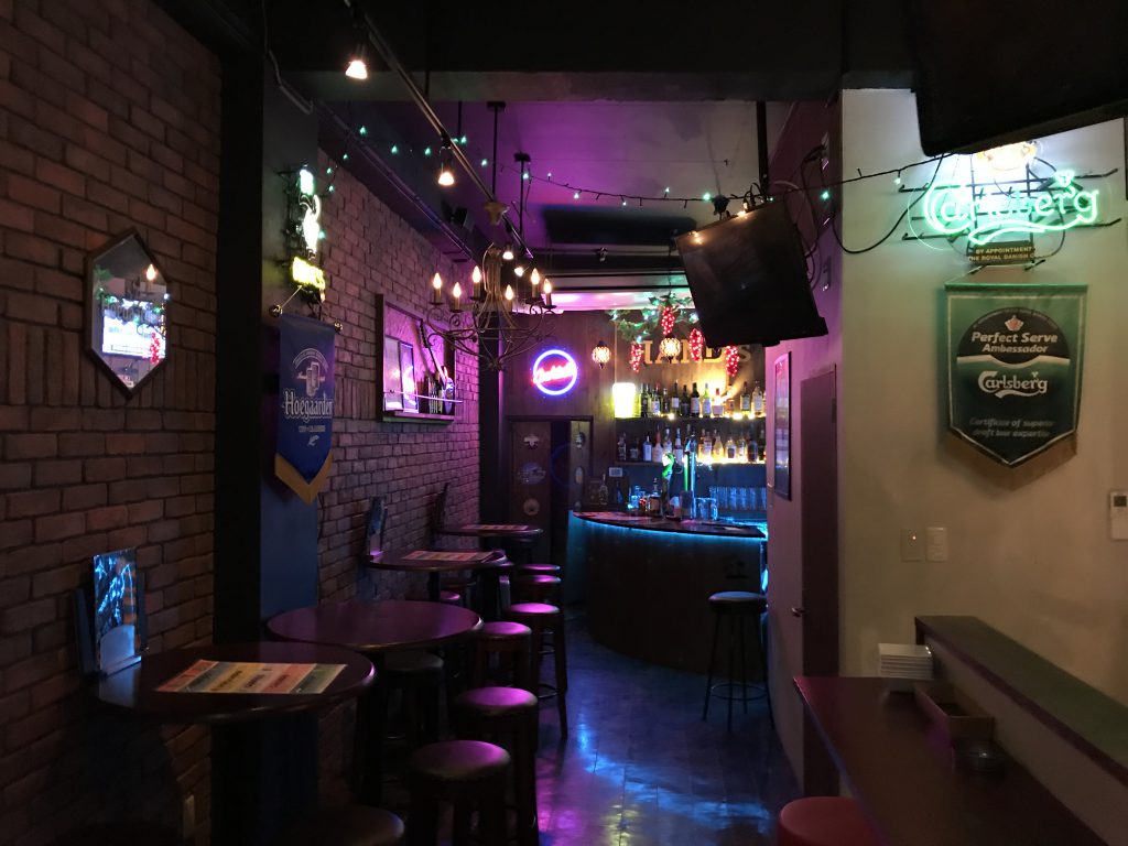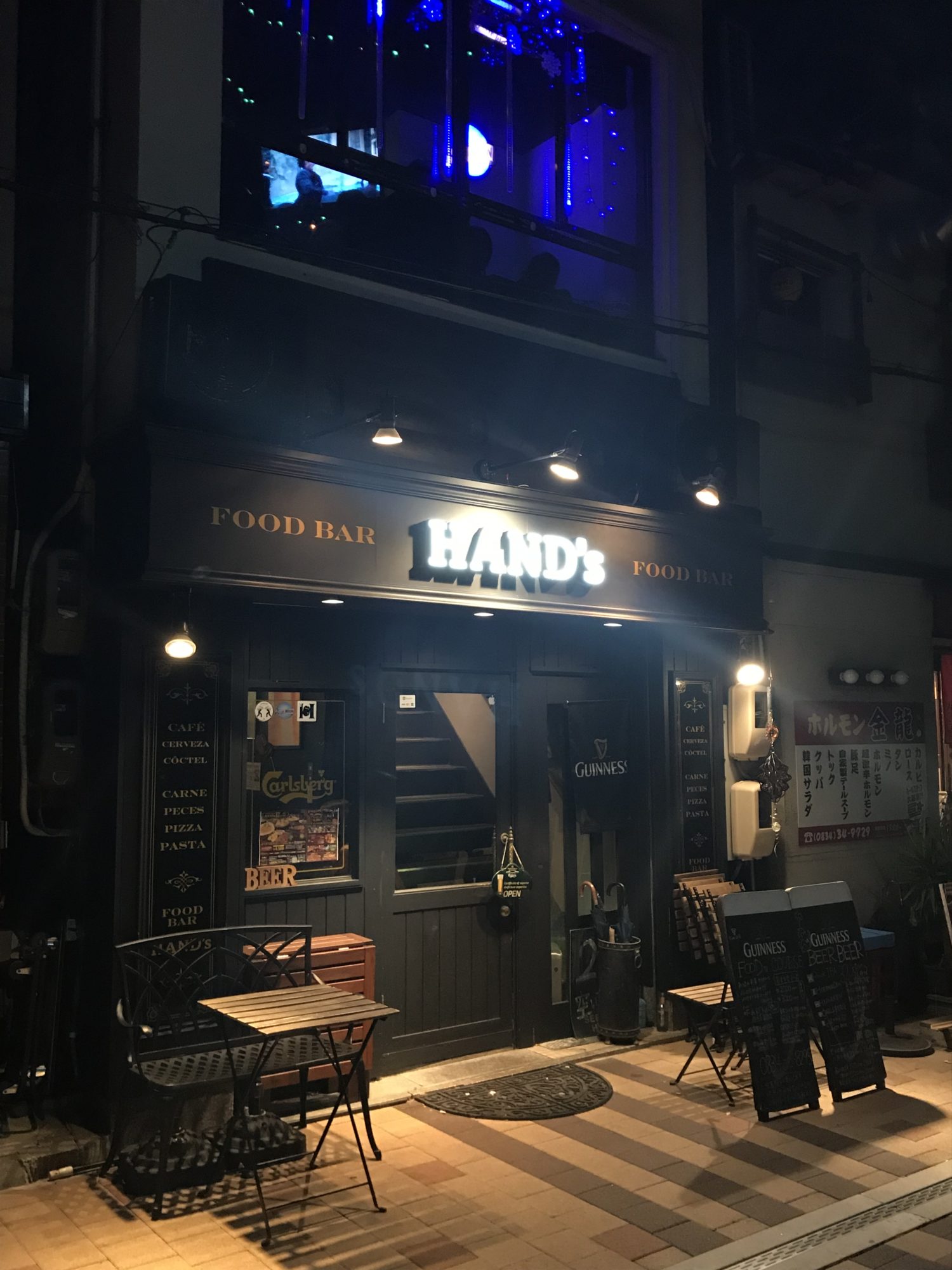 銀南街でひときわ異国感のある佇まいの「FOOD BAR HANDs(フードバー ハンズ)」。その店内もまるで外国のパブに来たかのような空間が広がっています。