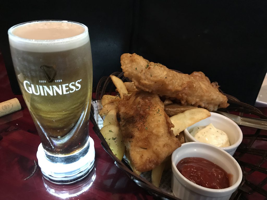 こだわりのフードメニューも充実。看板メニューはボリューム満点の「フィッシュ&チップス」