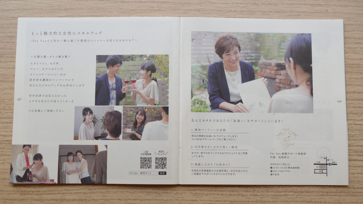 口コミで評判の高い「For You婚活サポート倶楽部」は、会員様のほとんどが近県か山口県内在住の方です。松岡さんも山口県光市で生まれ育っているので、地元で結婚をしたい方に親身に寄り添うことができます。