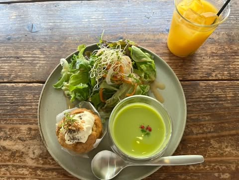 私は、ランチ用に期間限定のグリーンピースと定番のブルーベリークリームチーズをお持ち帰りしました。