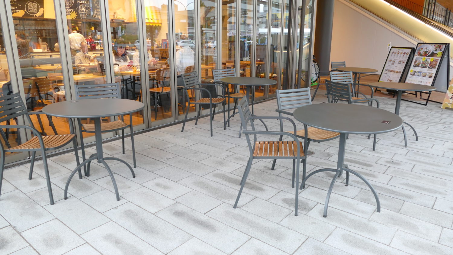 フタバフルーツパーラーの店外には外でも楽しめるよう、テラス席が準備されています。