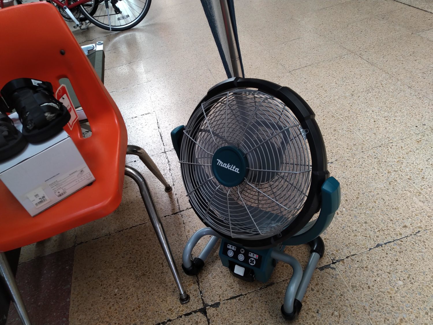 バッテリ駆動の扇風機がフル稼働中