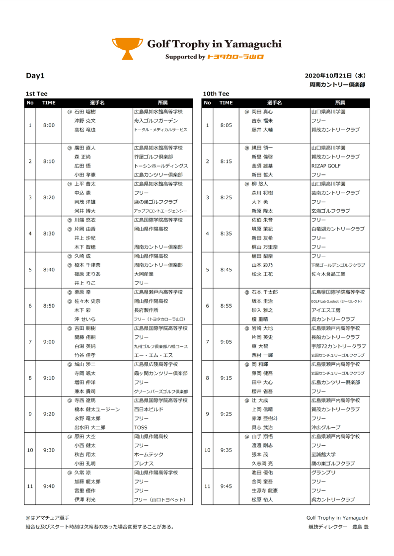 大会名称:Golf Trophy in Yamaguchi Supported byトヨタカローラ山口