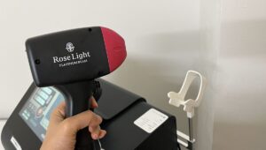 じゃじゃーん!これがセルフ脱毛ミルフィーユで使える脱毛マシーンです。かなり本格的で驚きました。正直、お店に行く前は「セルフ脱毛なら市販の脱毛器に毛が生えた程度だろう」と高を括っていたのです。