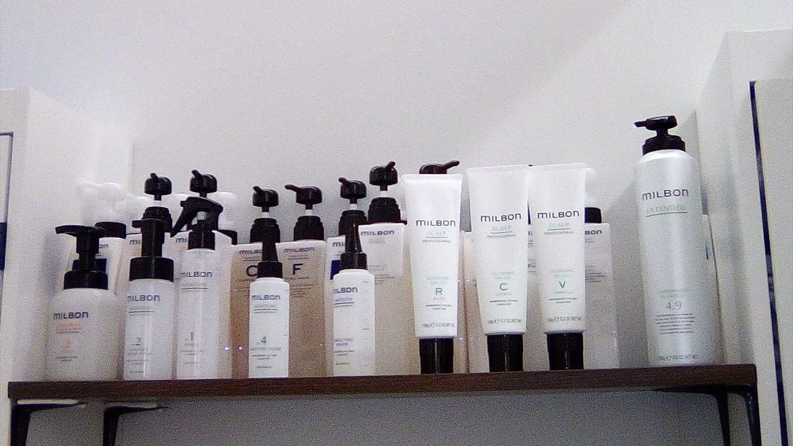 髪質に合わせて選んでくれるシャンプーの一部。 店頭販売もあります。