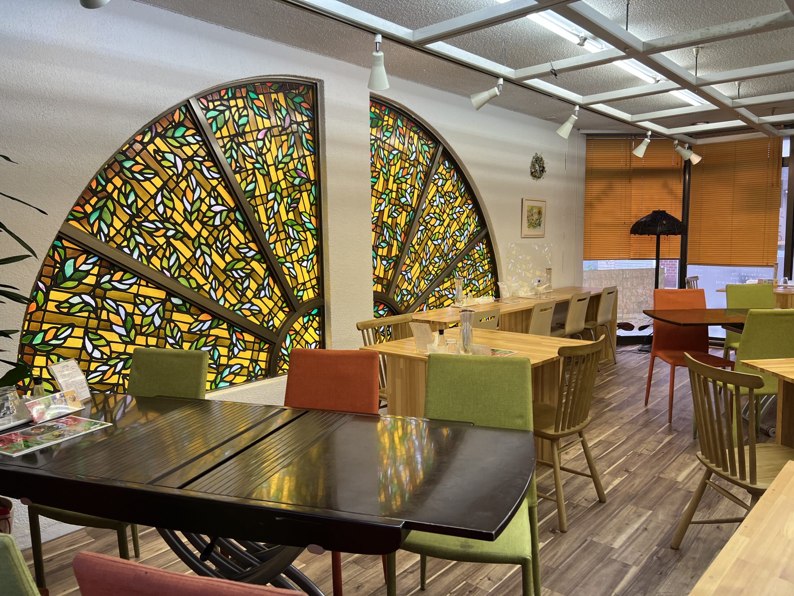 ステンドグラスは、昔からこの建物にあったもので、このレトロ感がすごくおしゃれです。