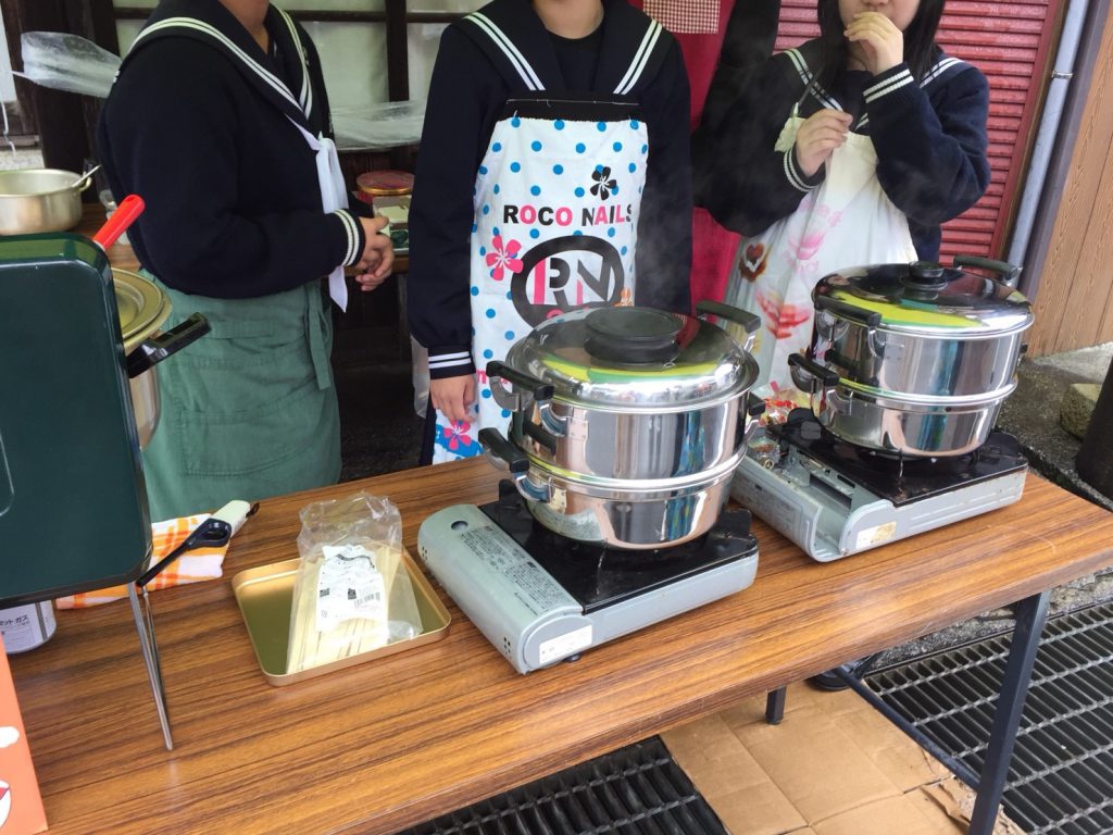 肉まんとあんまん。高校生たちが笑顔でおもてなし