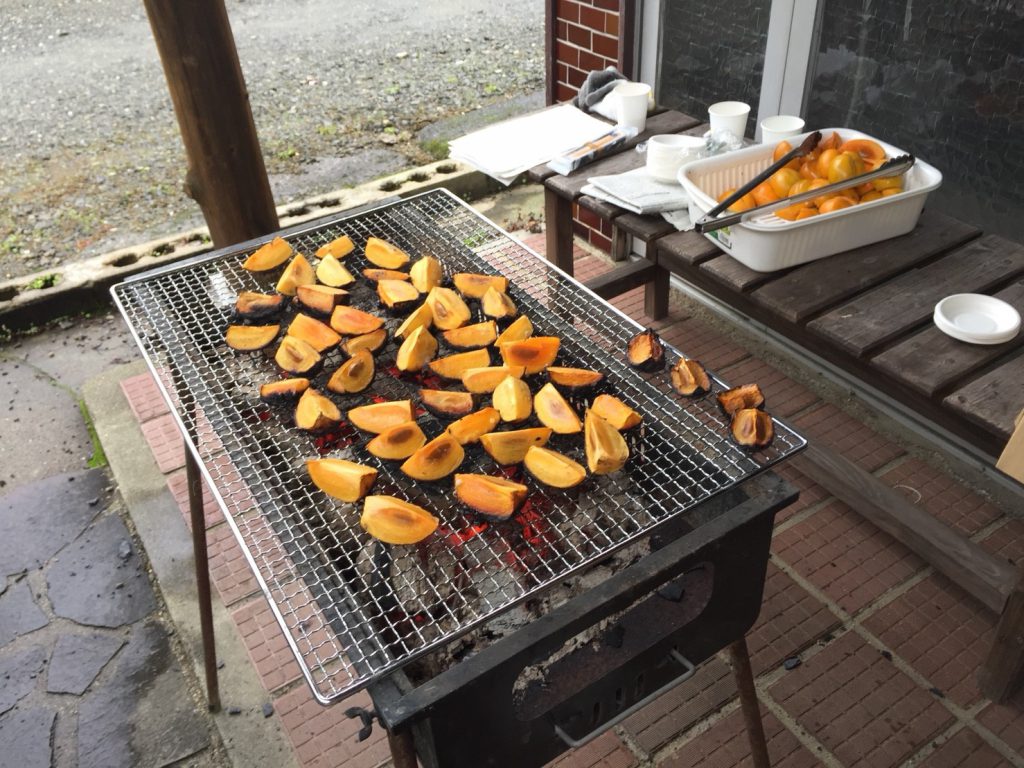 もぎたての柿を炭火でじっくり。甘さが凝縮されていきます