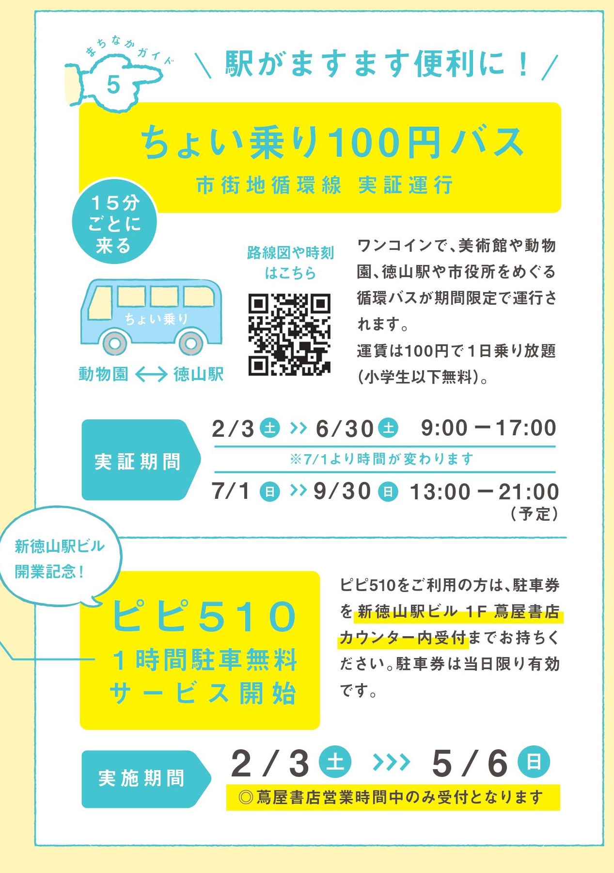 新徳山駅ビルオープンにあわせて、交通機関でも新しいサービスがスタートしています。tokuyamapでも紹介した、ちょい乗り100円バスの他にも、ピピ510では1時間駐車無料サービスも実施中です!