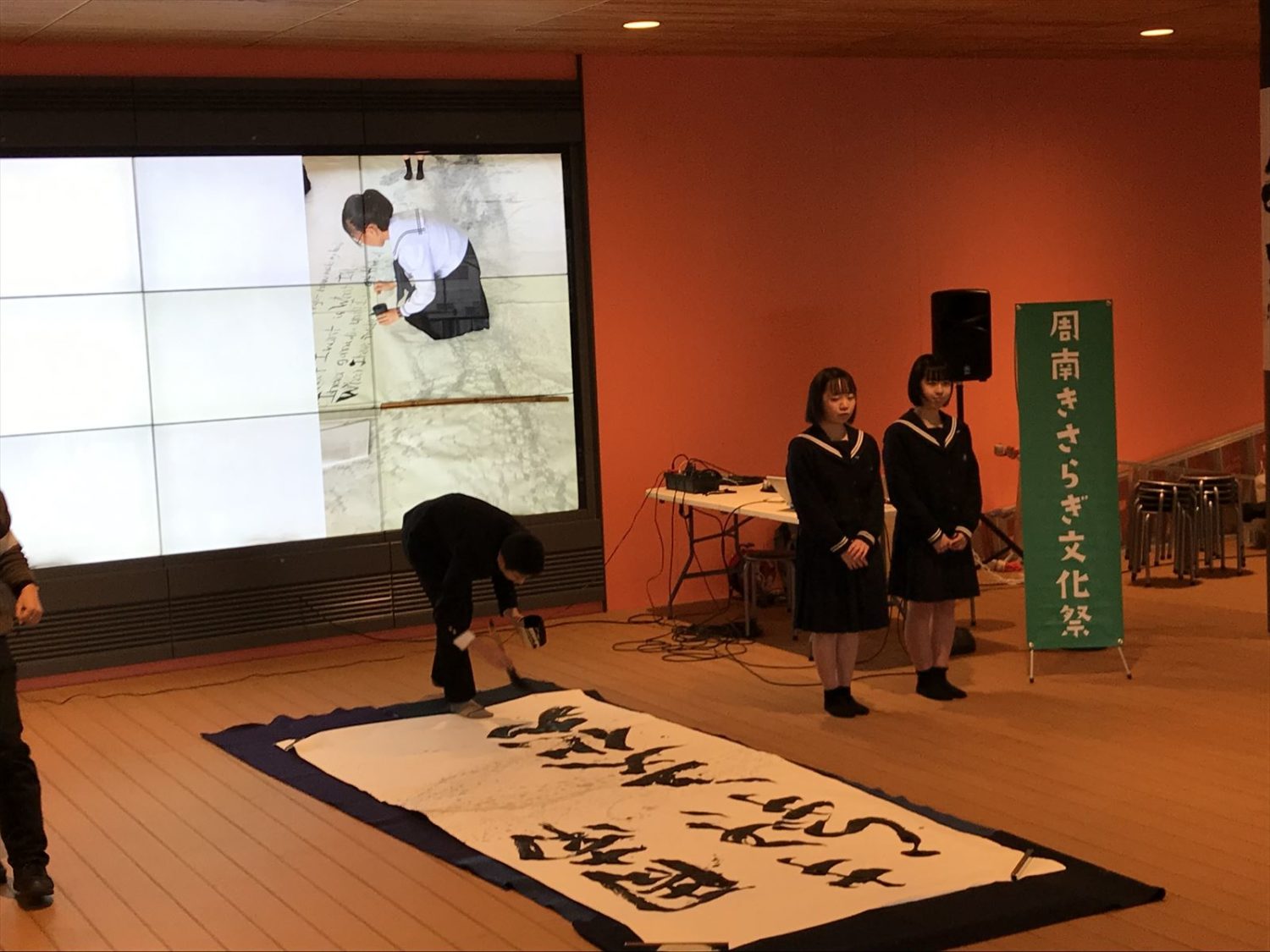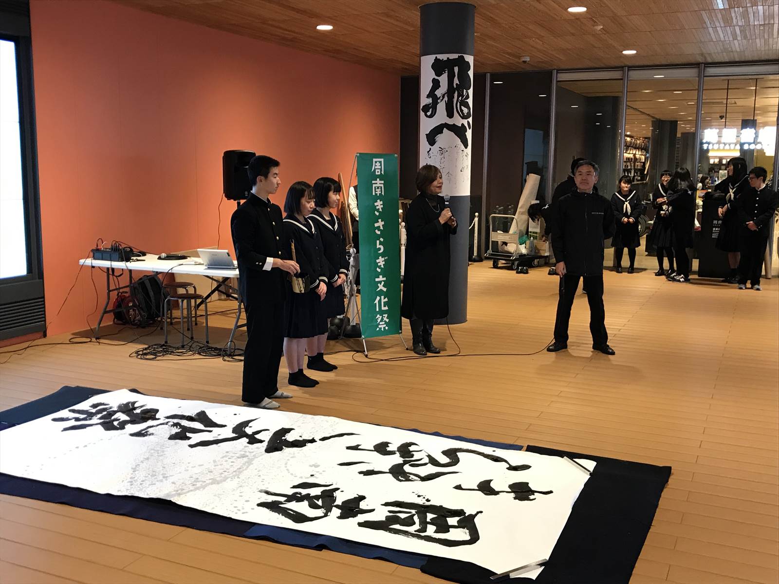 1日(金)、徳山高校書道部のみなさんのパフォーマンスできさらぎ文化祭は幕を開けました
