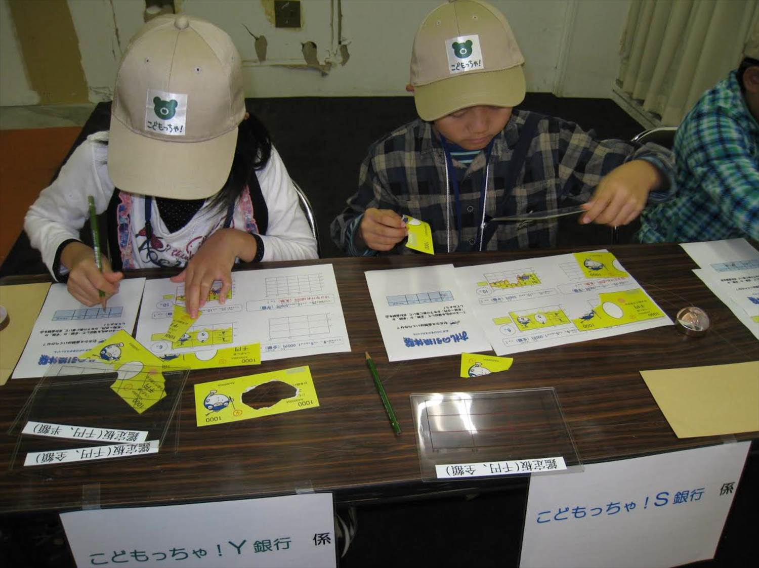 [box class=”pink_box”] お仕事が終わったら、スタッフが「こどもっちゃ!税務署」まで送り届けます。「こどもっちゃ!税務署」で、納税額が書かれてある給与明細書をもらってください。 [/box] - 「こどもっちゃ!銀行」で、Moccha!(会場内通貨)をもらおう。