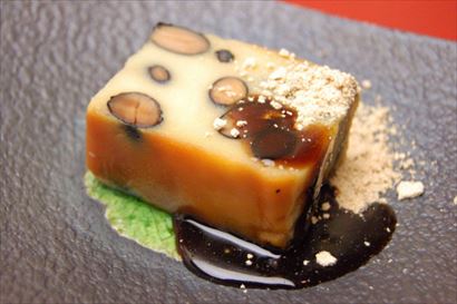 お正月に馴染みのある黒豆ですが、おせち料理だけでなく、美味しい黒豆の風味を味わって頂きたいとスイーツにしました。やさしい玉子の風味と黒豆がマッチします。付属の黒豆を煮詰めて作り上げた蜜と黒豆のきな粉をかけると一層味わいが広がります。半解凍でも美味しく召し上がれます。お好みで試してみて下さい。