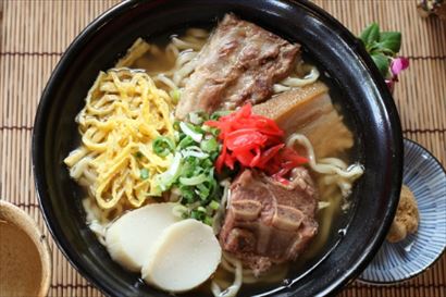 地元で年間販売6万食超えの大人気そば、3種類の豚肉が一度に味わえるのも人気の理由です。三枚肉・本ソーキはじっくり煮込み柔らかく仕上げました。軟骨ソーキは圧力鍋で骨まで食べられます。しかも女性に嬉しいコラーゲンたっぷりです。美味しく食べてお肌プリプリになれるかも