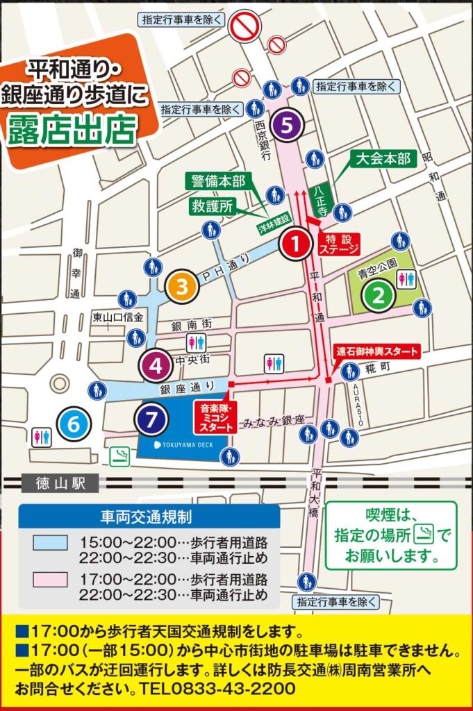 徳山駅前周辺から、銀座通り、平和通り、青空公園に会場が広がります。