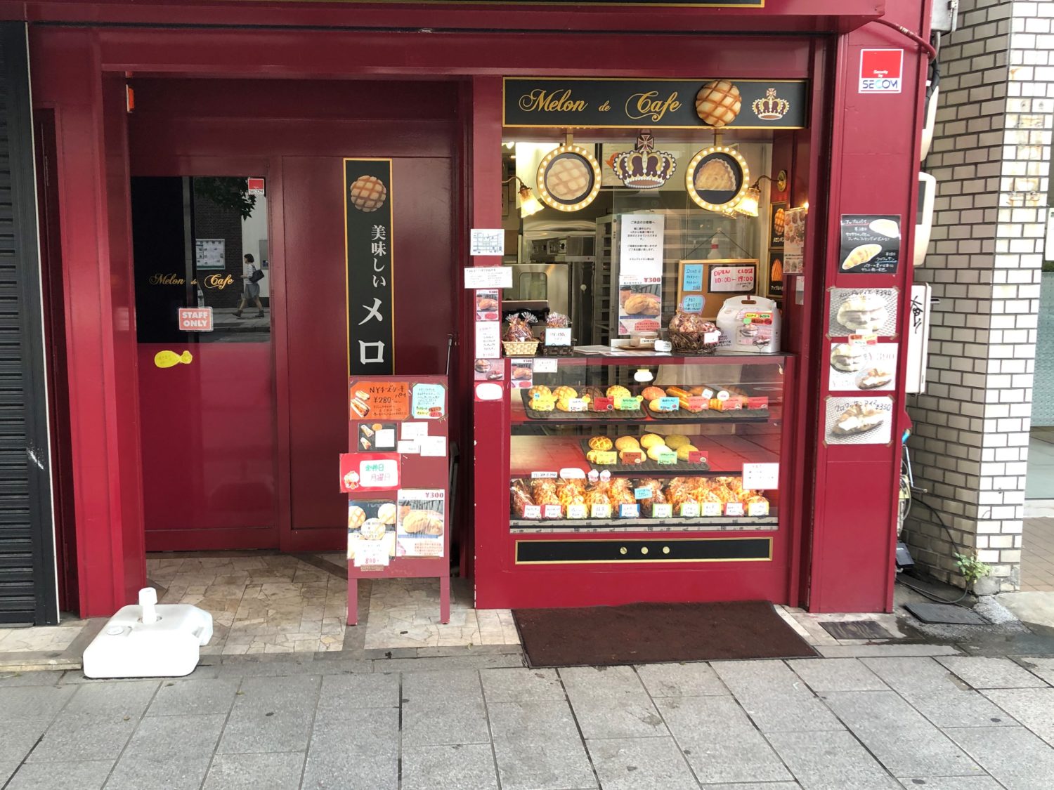 ショーケースに入ったメロンパンが並ぶ、おしゃれな外観