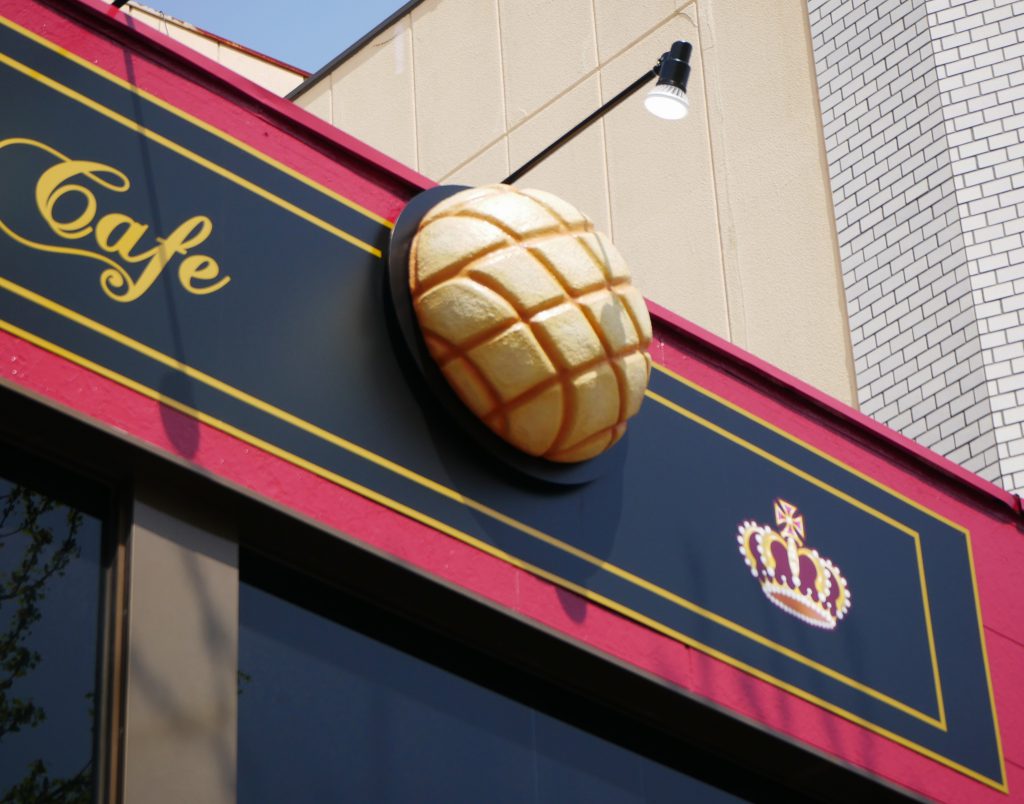 上を見上げると大きなメロンパンが!