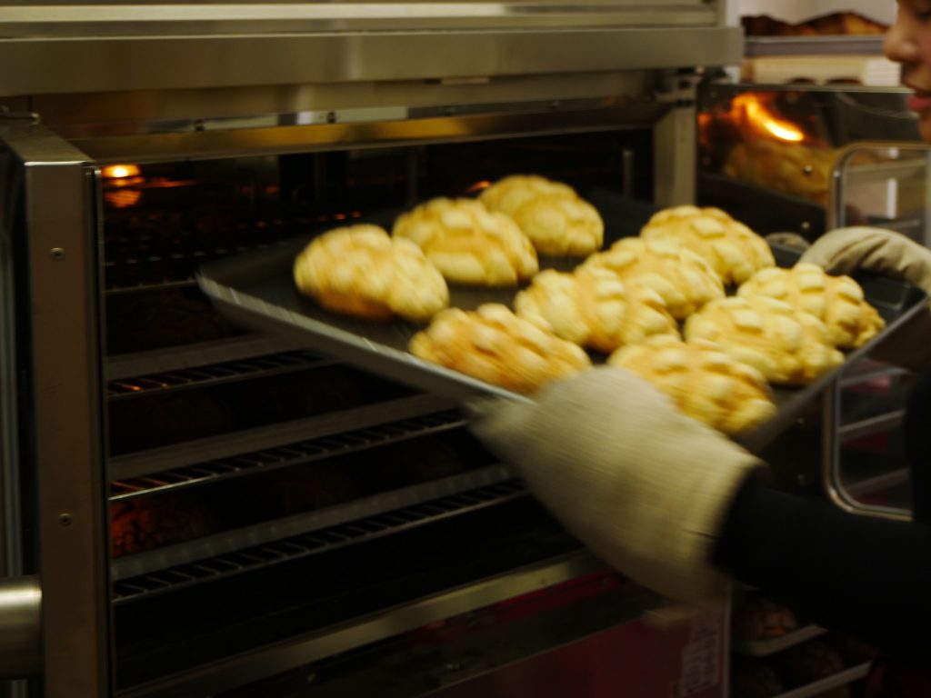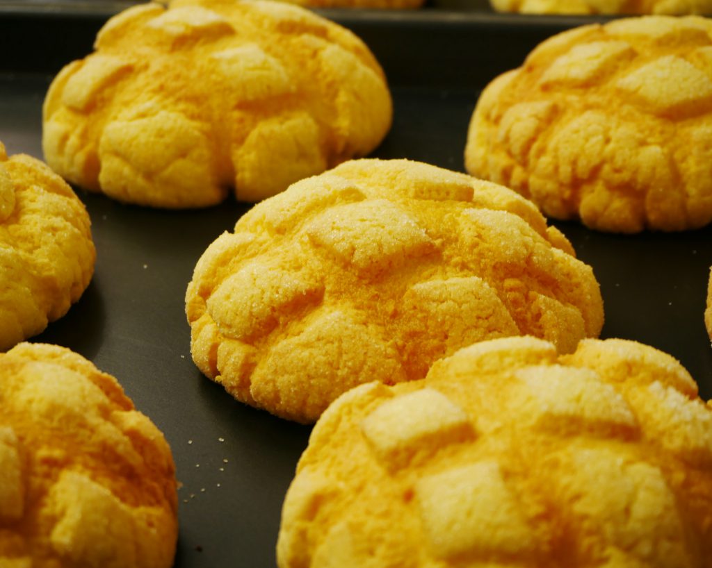 オーブンから出て来たばかりの焼き立てのメロンパン!