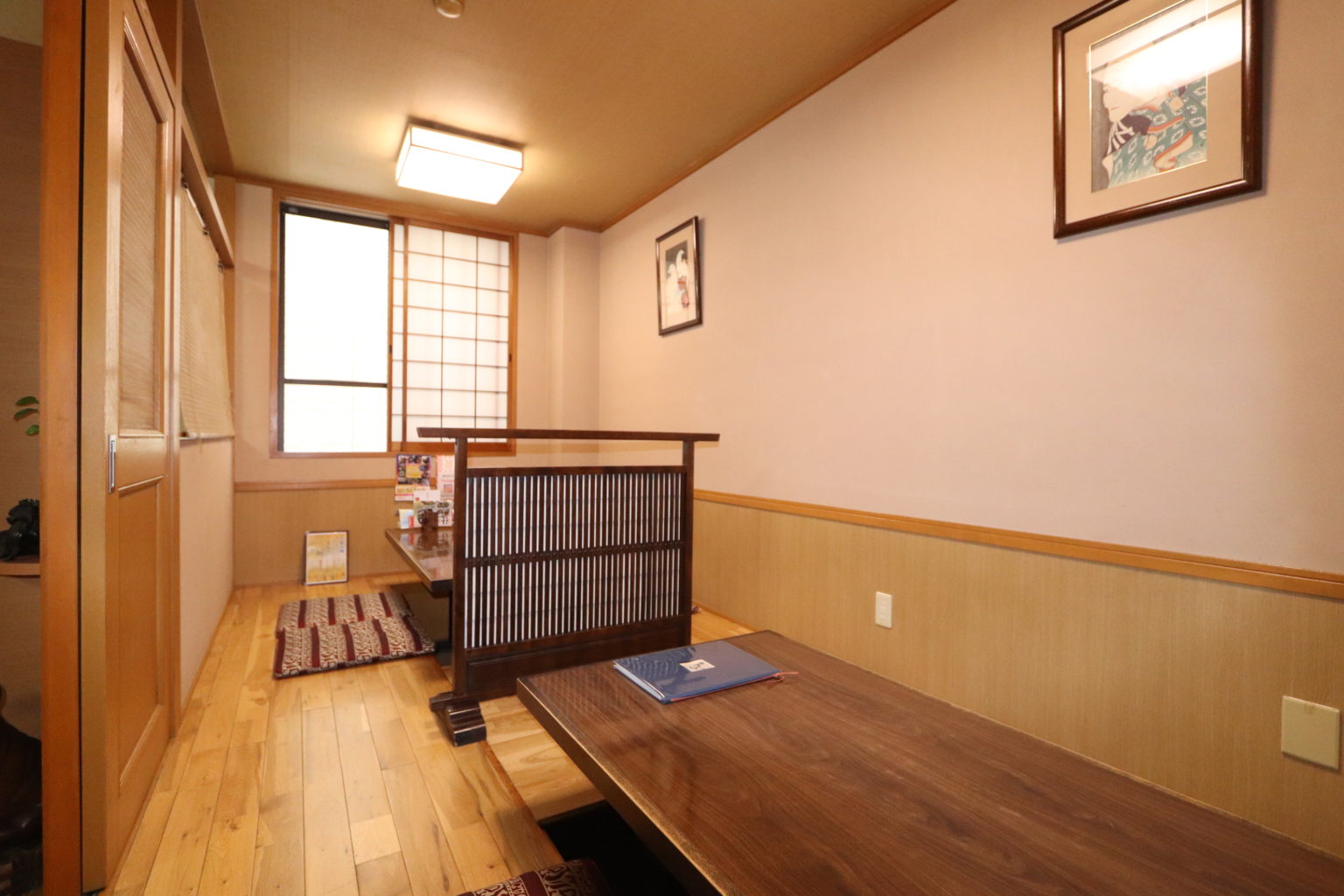 1階はカウンター席、テーブル席、掘りごたつ席、座敷になります。