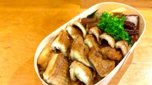 うなぎの骨を焼き、焼いた骨をタレを作る時に一緒に煮込んで作っています。