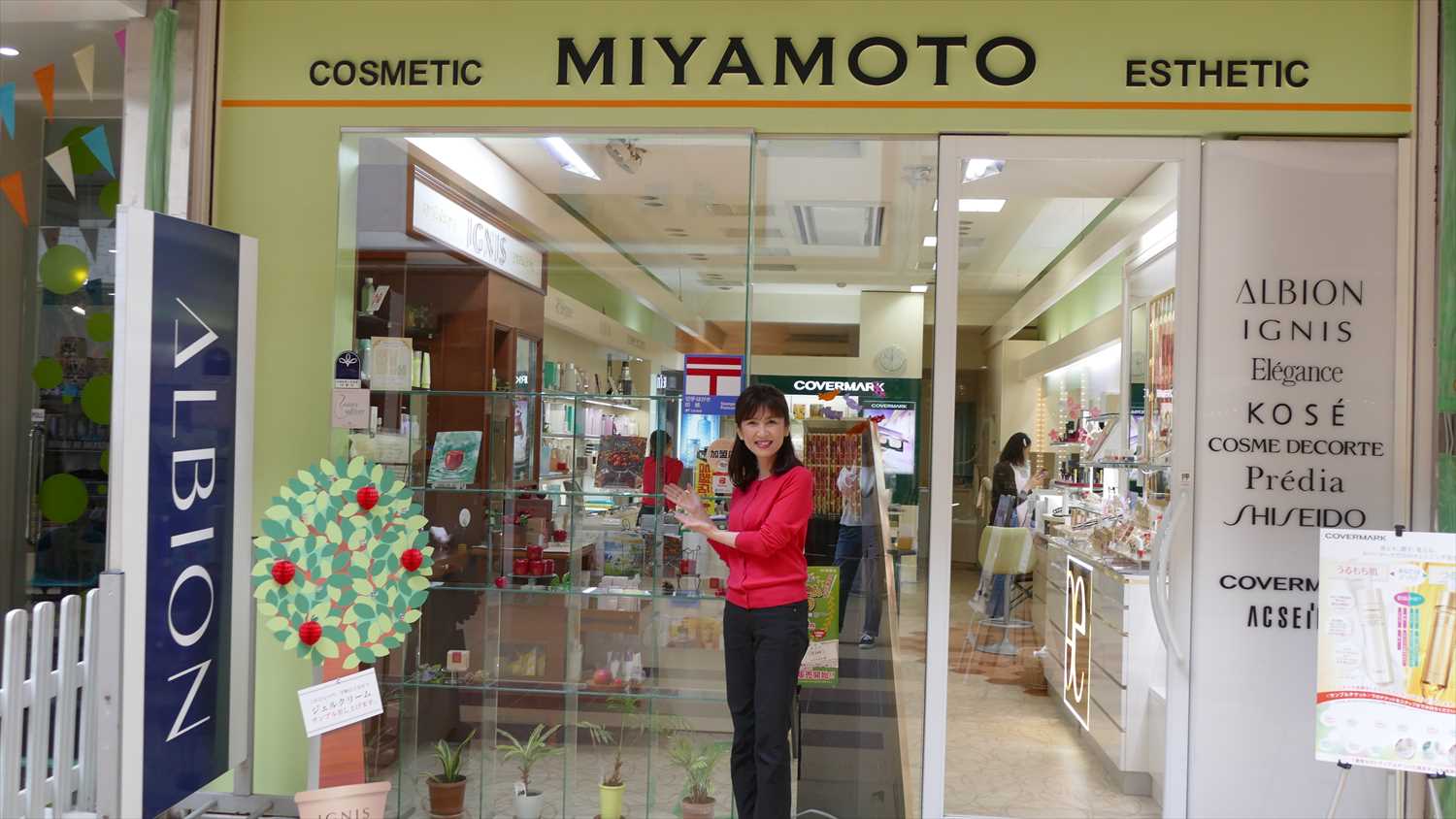 みわこさんは、銀南街にお店を構える化粧品店、みやもと化粧品店で働かれています。