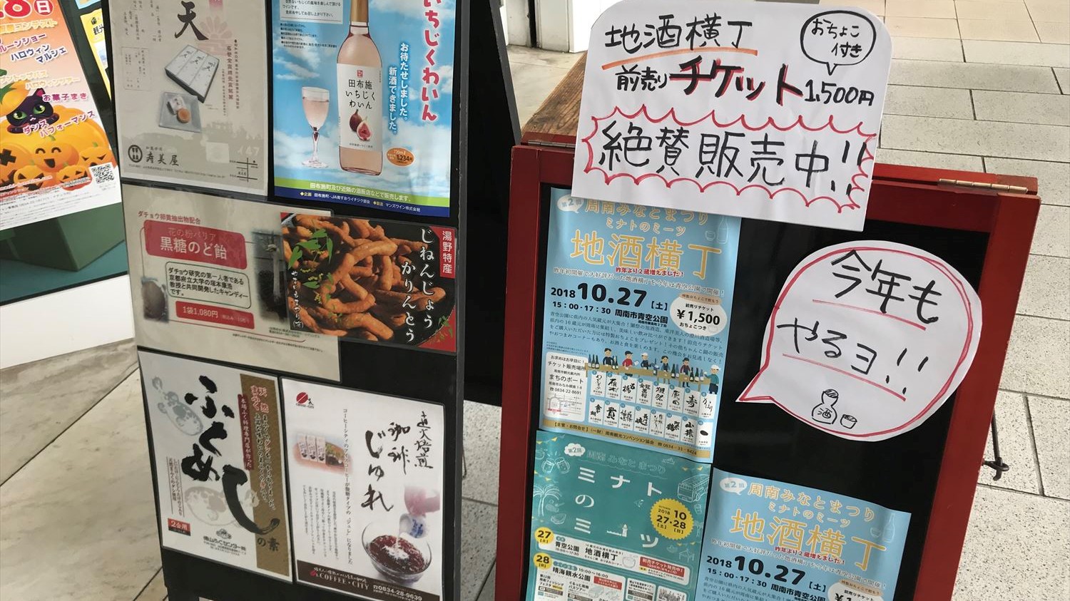 お酒を飲むために必要なチケットは、徳山駅近くの「まちのポート」で絶賛販売中です。おちょこが貰える前売り券が断然お得!