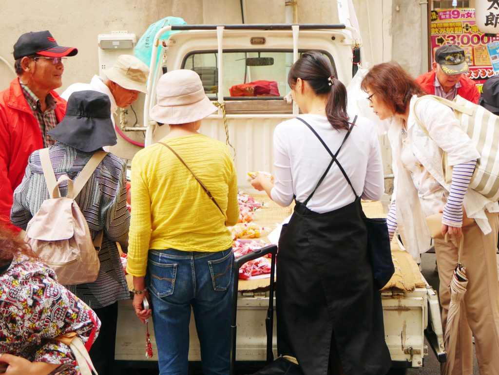 徳山の街中から北へ向かって車でおよそ30分の場所に位置する周南市長穂地区。毎月1回、長穂の新鮮な野菜を詰め込んだ軽トラ市出張朝市が徳山駅前商店街で開催されています。