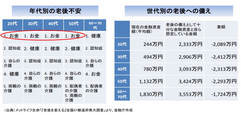 この金額はあくまで平均の不足額から導きだしたものであり、不足額は各々の収入・支出の状況やライフスタイル等によって大きく異なる。