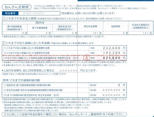 ではねんきん定期便の一例をもとに実際計算してみましょう。
