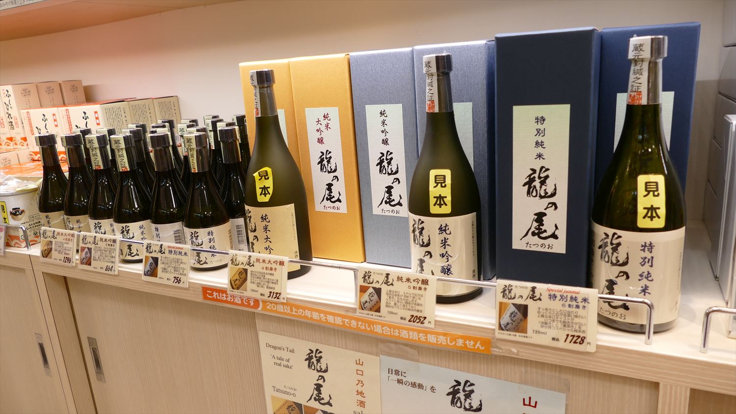 特に人気なのは、男自慢酒造の龍の尾ということで中央にドーンと揃っています。