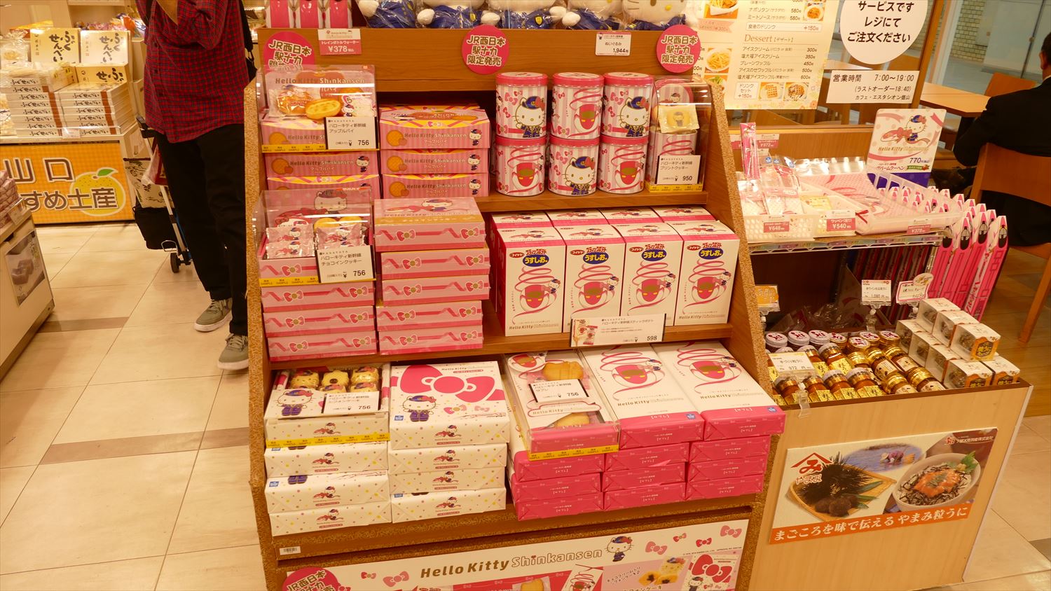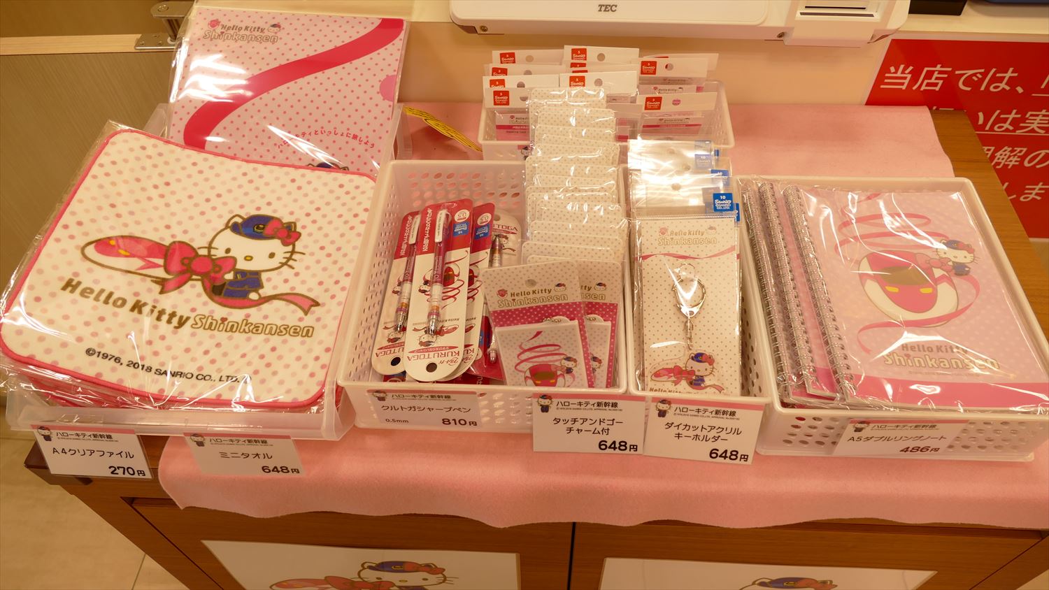 JR西日本(新大阪~博多間)を期間限定で走るキティちゃん新幹線の関連グッズが沢山取扱いされています。