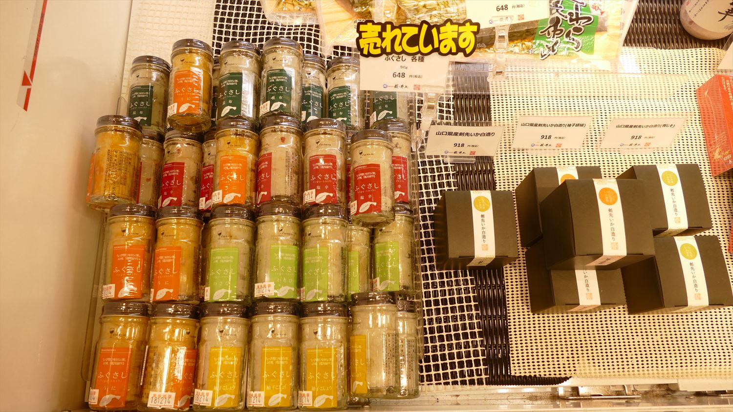 カラフルな瓶に入っているのは、ふぐさし専門店が作ったふぐさし塩辛で色によって味付けが違います。見た目も可愛いのでご家族のお土産に喜ばれそう!ご飯のお供にもどうぞ♡