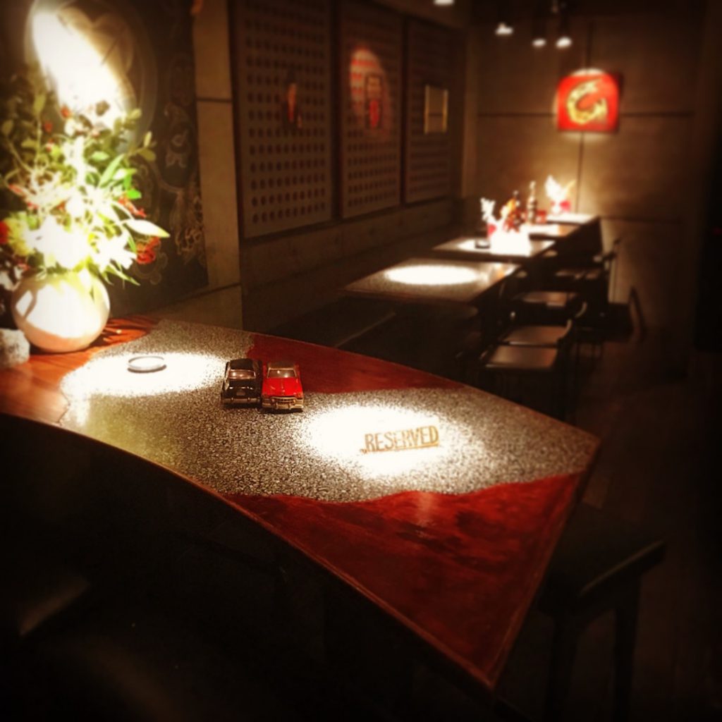 2名〜8名程度のボックス席。遊び心ある小物のセンスが光ります。