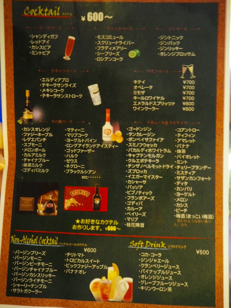 ドリンクメニュー