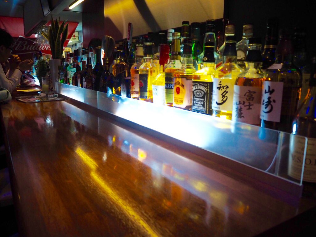 お酒がずらりと並ぶカウンター。