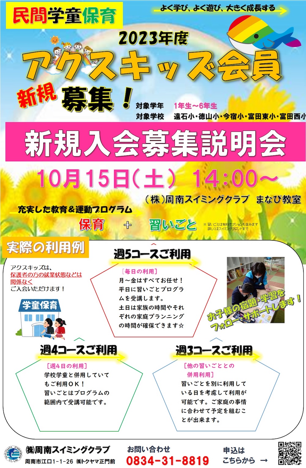 こんにちは!周南スイミングクラブ運営の民間学童保育アクスキッ