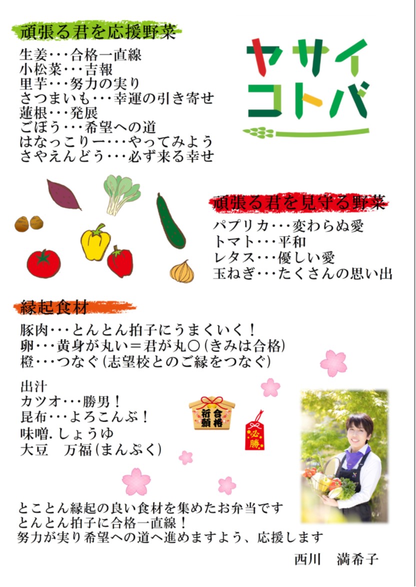 遠石会館『合格一直線弁当』期間限定販売!野菜ソムリエ西川満希子さん監修